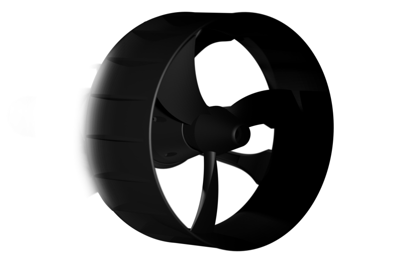 شبیه سازی با به روزترین نرم افزار های مکانیک سیالات منجر به طراحی پروانه منحصر به فردی گردیده که علاوه بر ابعاد نسبی کوچک، دارای بازدهی قابل توجهی میباشد. این پروانه درون یک نازل شتابدهنده قرار گرفته است که علاوه بر جلوگیری از برخورد اجسام خارجی به پروانه، منجر به افزایش نیروی رانش تا 35 درصد خواهد شد که مستقیما بر روی بازده کلی مجموعه همچون توان مصرفی، زمان دشارژ باتری ها، دمای موتور و کنترلر، مسافت قابل پیمایش و ... تاثیر گذار خواهد بود. همچنین با کاهش پدیدههای مخرب نظیر cavitation و paddle-wheel-effect طول عمر مفید پروانه و مجموعه انتقال قدرت نیز افزایش خواهد یافت.
