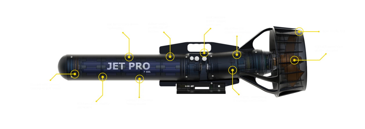 JETPRO گونه جدیدی از رانشگرهای غواصی موصوم به DPV و از دسته اسکوترهای دریایی میباشد که بطور گسترده در صنعت غواصی برای مقاصد مختلف مورد استفاده قرار می گیرد. این وسیله با اتصال به کپسول اکسیژن، نیروی جلوبرنده لازم برای جا به جایی غواص را طی مسافت های متوسط و طولانی فرآهم می آورد. با بکارگیری JETPRO در زیر آب، فعالیت بدنی ناشی از جابجایی غواص کاهش قابل ملاحظهای یافته که به تبع آن علاوه بر کاهش خستگی در حین و بعد از غواصی، زمان قابل بهره برداری از کپسول غواصی به دلیل پایین آمدن مصرف هوا افزایش مییابد. JETPRO بهگونه ای طراحی شده که غواصان مبتدی و حرفهای بدون نیاز به آموزش خاص و تنها صرف مدت زمان اندکی تمرین به راحتی میتوانند از آن استفاده کنند. از این رانشگر میتوان در بازرسیهای زیر سطحی تجهیزات مانند خطوط انتقال نفت و دیتا، سکوهای نفتی در آب و یا بازبینی بدنه زیردریاییها و کشتیها، عملیات جست و جو و نجات و یا مقاصد تفریحی بهره برد.